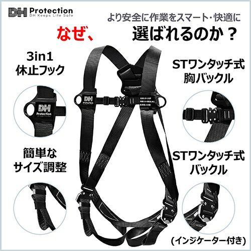 他の画像を見る 安全帯 フルハーネス DH Protection 新規格 墜落制止用器具 V型フルハーネス 130kg対応 ワンタッチ スチール DH02-JP13-P1 DHプロテクション 背中X型 水平型 フルハーネス安全帯 ハーネス 一般 高所作業 柱上作業 建設工事 軽量 ブラック 黒 メーカー希望小売価格 ¥ 12,210 特別価格 ¥ 8,800 税込 重さ約990gで130kgまで対応の圧倒的な軽さ! ALLワンタッチ式なので簡単に着脱できます。 カートに入れる お気に入りに登録する