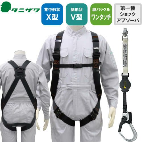 他の画像を見る 安全帯 フルハーネス シングルランヤード付き タニザワ 新規格 セット ハーネス 1丁掛け 背中X型 V字 腿ベルト 墜落制止用器具 巻取式 巻き取り 軽量 高所作業 柱上作業 建設工事 簡単着脱 UXV-02A ST#5701-SQG メーカー希望小売価格 ¥ 41,734 特別価格 ¥ 28,000 税込 新規格に対応したフルハーネス安全帯 第1種ショックアブソーバー付きの巻き取り式ランヤードD環への接続フック取付タイプ カートに入れる お気に入りに登録する