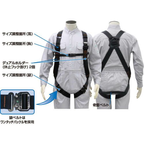 他の画像を見る 安全帯 フルハーネス シングルランヤード付き タニザワ 新規格 セット ハーネス 1丁掛け 凛 ワンタッチバックル(OTII) 背中Y型 水平 フラット 墜落制止用器具 巻取式 巻き取り 軽量 高所作業 建設工事 簡単着脱 ST#575A-OTII ST#5701-SQG 特別価格 ¥ 43,560 税込 女性のために一から設計。初登場の女性専用モデル 女性のために設計・開発され、ベルト位置を工夫し、胸を圧迫しません。着用時にとても便利な腿ベルトバックルのホルダーが装備されるなど、スマートに着用できる女性専用モデルです。サイズは標準サイズとSサイズ(特に小柄な方向け)をご用意しております。第1種ショックアブソーバー付きの巻き取り式ランヤードD環への接続フック取付タイプ 詳細を見る お気に入りに登録する
