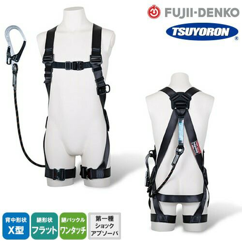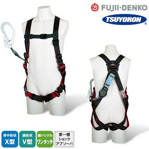 他の画像を見る 安全帯 フルハーネス ツヨロン 藤井電工 シングルランヤード付き 新規格 セット ハーネス 1丁掛け コアハーネス TH-502 Gブレード 背中X型 V字 腿ベルト 墜落制止用器具 ロープ式 軽量 一般 高所作業 柱上作業 建設工事 簡単着脱 特別価格 ¥ 31,480 税込 作業ベルトが標準装備。長時間作業を快適にするスタンダードモデル。 POINT1/ 作業ベルト付作業ベルトが標準装備となっており、現場での作業が多い方に最適。POINT2/ V型腿ベルト墜落制止時の衝撃を骨盤全体で受け止め、身体保持の安定性に優れています。POINT3/ 装着しやすい装着しやすいワンタッチバックルと、裏返りを防ぐ背面デザインの採用で装着がスムーズ。 詳細を見る お気に入りに登録する