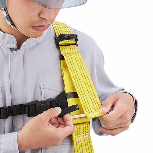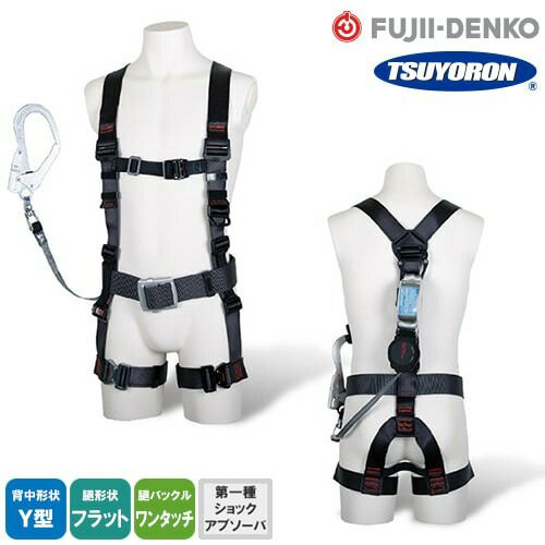 他の画像を見る 安全帯 フルハーネス ツヨロン 藤井電工 シングルランヤード付き 新規格 セット ハーネス 1丁掛け 飛燕ハーネス TH-506 ノビロン 背中Y型 水平 フラット 墜落制止用器具 伸縮式 軽量 一般 高所作業 柱上作業 建設工事 簡単着脱 特別価格 ¥ 35,150 税込 多くの工具類を装備でき、動きやすさも配慮したY型モデル。 POINT1/ 広い道具取付けスペース胸ベルト部に道具取付けスペースを広く確保したY型のフルハーネス。多くの工具類を必要とする作業に最適。POINT2/ 束縛感がない腿部は左右が独立した、束縛感の少ない水平型腿ベルト。道具を多く装備しても動きやすい設計。POINT3/ 身体に合わせてフィットベルトの長さに調節範囲を広くとっているため、夏服・冬服でもぴったり装着が可能。 詳細を見る お気に入りに登録する