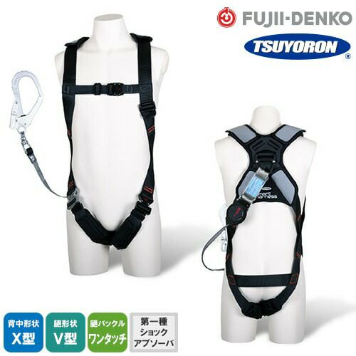 他の画像を見る 安全帯 フルハーネス ツヨロン 藤井電工 シングルランヤード付き 新規格 セット ハーネス 1丁掛け レヴォハーネス TH-508 Gブレード 背中X型 V字 腿ベルト 墜落制止用器具 ロープ式 軽量 一般 高所作業 柱上作業 建設工事 簡単着脱 特別価格 ¥ 26,540 税込 あらゆる高所作業を支える、安全性と装着性に優れたフラッグシップモデル。 POINT1/ 装着しやすい表と裏の色が異なり、ベルトのねじれが判断しやすいため装着がスムーズ。POINT2/ 動きやすい腰部の交差部が可動し、身体の動きにフィットするので作業性を高めます。POINT3/ 落下時も安心安全骨盤・足回りにベルトが配置されており、落下時に衝撃荷重を分散する上、ベルトがお尻を包み込むので救助までの持久時間が向上。 詳細を見る お気に入りに登録する