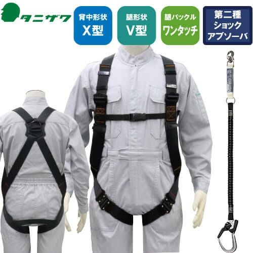 他の画像を見る 安全帯 フルハーネス シングルランヤード付き タニザワ 新規格 セット ハーネス 1丁掛け 匠II 作業ベルトなし 背中X型 水平 フラット 墜落制止用器具 伸縮式 軽量 一般 高所作業 柱上作業 建設工事 簡単着脱 ST#571A-N ST#5702-TRG 特別価格 ¥ 32,450 税込 自然な装着感がさらに進化したスタンダードモデル ST#571Aの背中形状はX型。どのような体型の方でもフィットする自然な装着感が魅力です。第2種ショックアブソーバー付きの伸縮ランヤードD環への接続フック取付タイプ 詳細を見る お気に入りに登録する