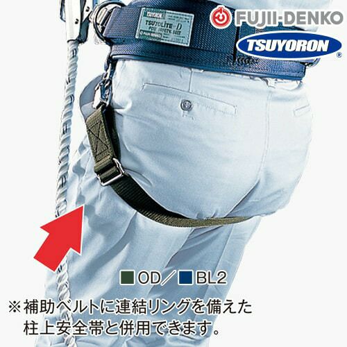 他の画像を見る ずり上がり防止ベルト キーロック対応型フルハーネス用 ツヨロン 藤井電工 柱上安全帯用補助用ベルト サポート サポートベルト 補助ベルト CB-SU1-BX U字吊り 新規格対応 柱上用 電柱 高所作業 安全帯 墜落制止用器具 柱上安全帯 特別価格 ¥ 4,919 税込 キーロック対応型フルハーネスに組み合わせて使えるオプション部品 ハーネスの腰部クロス部と補助ベルトを一緒に巻いて固定し、柱上安全帯のずり上がりを防止するベルトです。 カートに入れる お気に入りに登録する