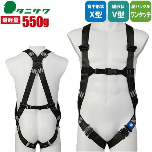安全帯 フルハーネス タニザワ 谷沢製作所 新規格 墜落制止用器具 ST#522A タフライト 単体 作業ベルトなし 背中X型 V字 腿ベルト フルハーネス安全帯 ハーネス 一般 高所作業 柱上作業 建設工事 軽量 簡単着脱