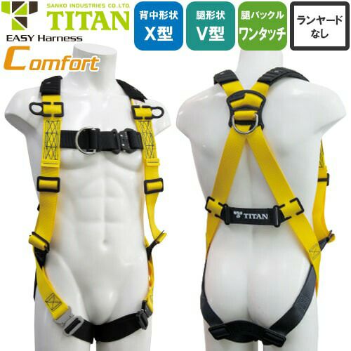 他の画像を見る 安全帯 タイタン TITAN サンコー フルハーネス 新規格 墜落制止用器具 EASY Harness Comfort コンフォート EHCN-10A 胴作業ベルトなし 背中X型 V字 腿ベルト フルハーネス安全帯 ハーネス 一般 高所作業 柱上作業 建設工事 軽量 特別価格 ¥ 28,420 税込 〜 特別価格 ¥ 税込 肩パッド、ワンタッチバックルを装備のEASY Harnessシリーズの上位モデル。 ソフトなベルトと肩パッドを装備しています。両腿にワンタッチバックルを採用した「Easy Harness Neo」の上位モデルです。 詳細を見る お気に入りに登録する