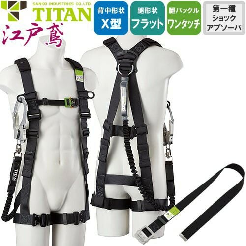 他の画像を見る 安全帯 タイタン TITAN サンコー フルハーネス シングルランヤード付き 新規格 セット ハーネス 1丁掛け 江戸鳶 ETN-9A-DEB EXJ 胴作業ベルト付き 背中X型 水平 フラット 墜落制止用器具 伸縮式 軽量 一般 高所作業 柱上作業 建設工事 特別価格 ¥ 50,700 税込 〜 特別価格 ¥ 税込 抜群の着心地!建設業を中心に不動の人気のプロモデル。 フルハーネス本体+タイプ1ランヤードセットランヤードは縫製によりD環に直接取り付けています。 詳細を見る お気に入りに登録する