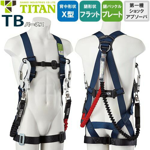他の画像を見る 安全帯 タイタン TITAN サンコー フルハーネス 新規格 墜落制止用器具 TBハーネス TBN-10B 胴作業ベルトなし 背中X型 水平 フラット フルハーネス安全帯 ハーネス 一般 高所作業 柱上作業 建設工事 軽量 簡単着脱 特別価格 ¥ 18,830 税込 〜 特別価格 ¥ 税込 腿ベルトが水平タイプ、かつ左右で独立した構造なので、足を大きく開く等の大きな動きでもストレスがありません! 専用のアルミ固定版が胴ベルトをしっかりキープしてくれます。 詳細を見る お気に入りに登録する