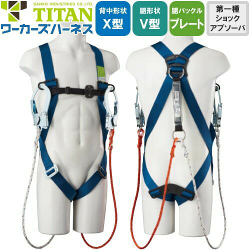 他の画像を見る 安全帯 タイタン TITAN サンコー フルハーネス ダブルランヤード付き 新規格 セット ハーネス 2丁掛け ワーカーズハーネス WKSN-10B-DW-HB 背中X型 V字 腿ベルト 墜落制止用器具 ロープ式 軽量 一般 高所作業 柱上作業 建設工事 簡単着脱 特別価格 ¥ 25,920 税込 シンプルな形状の軽量タイプ。簡単な調整で身体にフィット、ランヤード付きですぐに使える! フルハーネス本体+タイプ1ランヤード(第1種ショックアブソーバ)セット 詳細を見る お気に入りに登録する