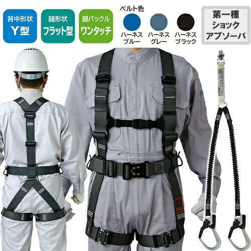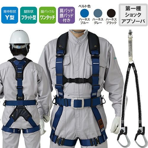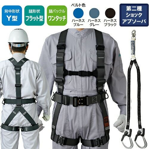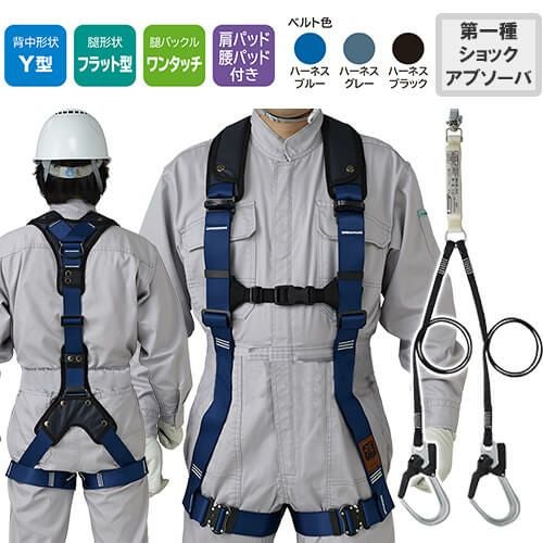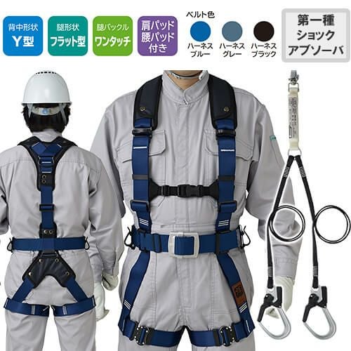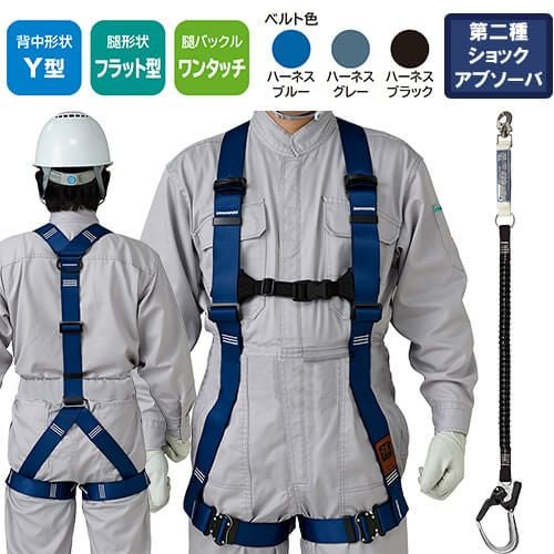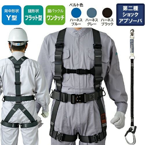 他の画像を見る 安全帯 フルハーネス ダブルランヤード付き タニザワ 新規格 セット ハーネス 2丁掛け 輝II 作業ベルトなし 背中Y型 水平 フラット 墜落制止用器具 帯ロープ式 軽量 一般 高所作業 柱上作業 建設工事 簡単着脱 ST#574A-N ST#5701-2SG 特別価格 ¥ 36,050 税込 激しい動きでも耐えられるプロが認めた確かな性能高い性能はそのままにパッドなしのシンプルモデル 耐久性に優れた金属製の胴ベルトアタッチメントを採用、まさにプロ仕様のフルハーネスです。第1種ショックアブソーバー付きの帯ランヤードD環への接続フック取付タイプ 詳細を見る お気に入りに登録する
