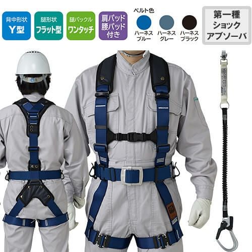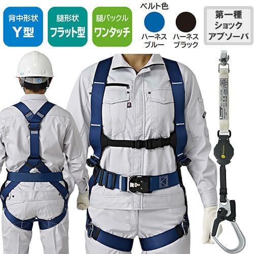 他の画像を見る 安全帯 フルハーネス シングルランヤード付き タニザワ 新規格 セット ハーネス 1丁掛け 輝II 肩腰パット付 軽量バックル(SK) 背中Y型 水平 フラット 墜落制止用器具 巻取式 巻き取り 軽量 高所作業 柱上作業 建設工事 簡単着脱 ST#574AD-SK 特別価格 ¥ 51,860 税込 激しい動きでも耐えられるプロが認めた確かな性能高い装着感!肩パッド・腰パッド付きのハードユーザー向けハイスペックモデル 動きの激しい作業でも緩みにくく、さらに耐久性に優れた金属製の胴ベルトアタッチメントを採用、まさにプロ仕様のフルハーネスです。肩パッドと腰パッドを標準装備し、重量物を運んだり、重い工具をつけたときの身体への負担を軽減します。第1種ショックアブソーバー付きの巻き取り式ランヤードD環への接続フック取付タイプ 詳細を見る お気に入りに登録する