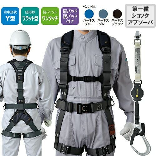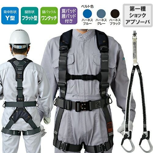 他の画像を見る 安全帯 フルハーネス シングルランヤード付き タニザワ 新規格 セット ハーネス 1丁掛け 輝II 作業ベルトなし 背中Y型 水平 フラット 墜落制止用器具 巻取式 巻き取り 軽量 高所作業 柱上作業 建設工事 簡単着脱 ST#574A-N ST#5701-SQG 特別価格 ¥ 38,030 税込 激しい動きでも耐えられるプロが認めた確かな性能高い性能はそのままにパッドなしのシンプルモデル 耐久性に優れた金属製の胴ベルトアタッチメントを採用、まさにプロ仕様のフルハーネスです。第1種ショックアブソーバー付きの巻き取り式ランヤードD環への接続フック取付タイプ 詳細を見る お気に入りに登録する