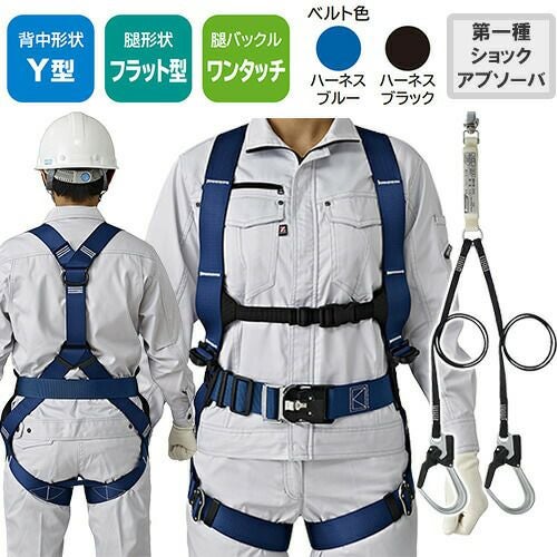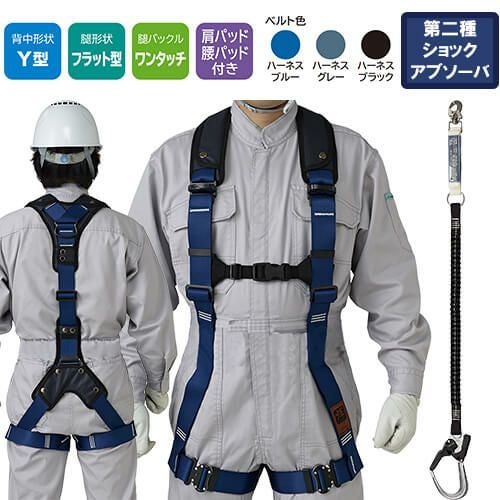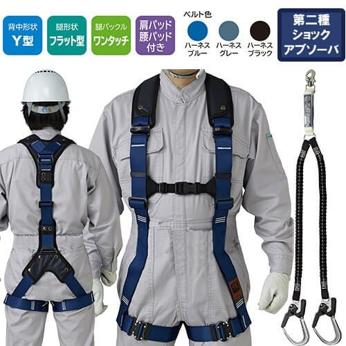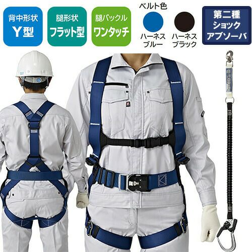 他の画像を見る 安全帯 フルハーネス ダブルランヤード付き タニザワ 新規格 セット ハーネス 2丁掛け 輝II 肩腰パット付 ワンタッチバックル 背中Y型 水平 フラット 墜落制止用器具 伸縮式 軽量 一般 高所作業 柱上作業 建設工事 簡単着脱 ST#574AD-OTIII 特別価格 ¥ 58,440 税込 激しい動きでも耐えられるプロが認めた確かな性能高い装着感!肩パッド・腰パッド付きのハードユーザー向けハイスペックモデル 動きの激しい作業でも緩みにくく、さらに耐久性に優れた金属製の胴ベルトアタッチメントを採用、まさにプロ仕様のフルハーネスです。肩パッドと腰パッドを標準装備し、重量物を運んだり、重い工具をつけたときの身体への負担を軽減します。第2種ショックアブソーバー付きの伸縮ランヤードD環への接続フック取付タイプ 詳細を見る お気に入りに登録する