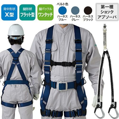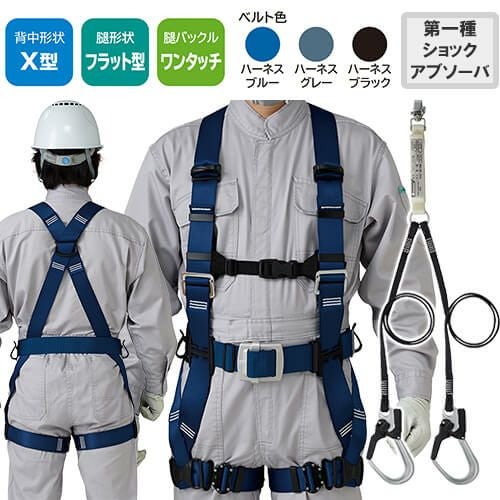 他の画像を見る 安全帯 フルハーネス ダブルランヤード付き タニザワ 新規格 セット ハーネス 2丁掛け 匠II 作業ベルトなし 背中X型 水平 フラット 墜落制止用器具 帯ロープ式 軽量 一般 高所作業 柱上作業 建設工事 簡単着脱 ST#571A-N ST#5701-2SG 特別価格 ¥ 31,730 税込 自然な装着感がさらに進化したスタンダードモデル ST#571Aの背中形状はX型。どのような体型の方でもフィットする自然な装着感が魅力です。第1種ショックアブソーバー付きの帯ランヤードD環への接続フック取付タイプ 詳細を見る お気に入りに登録する