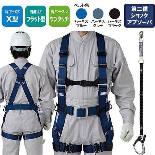 他の画像を見る 安全帯 フルハーネス ダブルランヤード付き タニザワ 新規格 セット ハーネス 2丁掛け 匠II 作業ベルトなし 背中X型 水平 フラット 墜落制止用器具 伸縮式 軽量 一般 高所作業 柱上作業 建設工事 簡単着脱 ST#571A-N ST#5702-2TRG 特別価格 ¥ 37,870 税込 自然な装着感がさらに進化したスタンダードモデル ST#571Aの背中形状はX型。どのような体型の方でもフィットする自然な装着感が魅力です。第2種ショックアブソーバー付きの伸縮ランヤードD環への接続フック取付タイプ 詳細を見る お気に入りに登録する