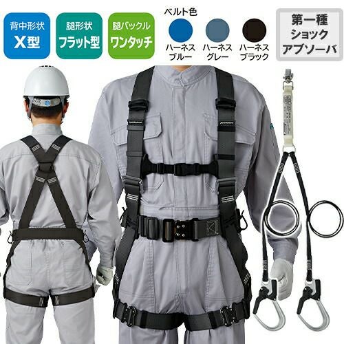 他の画像を見る 安全帯 フルハーネス シングルランヤード付き タニザワ 新規格 セット ハーネス 1丁掛け 匠II 軽量バックル(SK) 背中X型 水平 フラット 墜落制止用器具 巻取式 巻き取り 軽量 高所作業 柱上作業 建設工事 簡単着脱 ST#571A-SK ST#5701-SQG 特別価格 ¥ 36,820 税込 自然な装着感がさらに進化したスタンダードモデル ST#571Aの背中形状はX型。どのような体型の方でもフィットする自然な装着感が魅力です。第1種ショックアブソーバー付きの巻き取り式ランヤードD環への接続フック取付タイプ 詳細を見る お気に入りに登録する