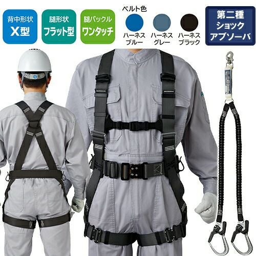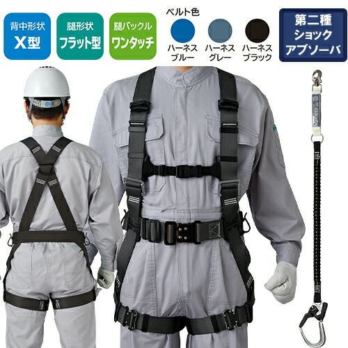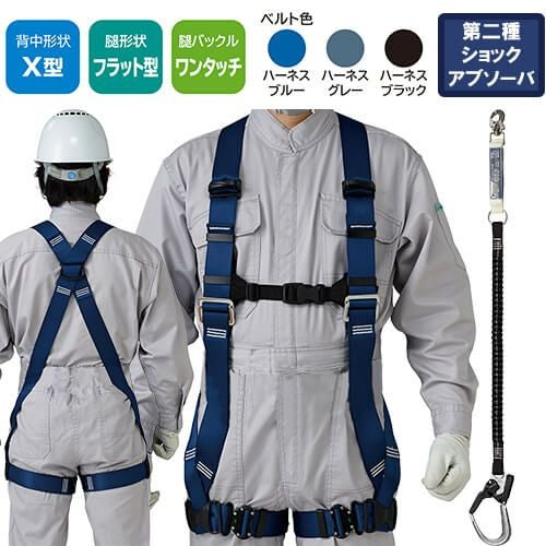 他の画像を見る 安全帯 フルハーネス ダブルランヤード付き タニザワ 新規格 セット ハーネス 2丁掛け 匠II 軽量バックル(SK) 背中X型 水平 フラット 墜落制止用器具 伸縮式 軽量 一般 高所作業 柱上作業 建設工事 簡単着脱 ST#571A-SK ST#5702-2TRG 特別価格 ¥ 40,980 税込 自然な装着感がさらに進化したスタンダードモデル ST#571Aの背中形状はX型。どのような体型の方でもフィットする自然な装着感が魅力です。第2種ショックアブソーバー付きの伸縮ランヤードD環への接続フック取付タイプ 詳細を見る お気に入りに登録する