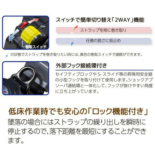 他の画像を見る 安全帯 胴ベルト型 墜落制止用器具 タイタン TITAN サンコー 新規格 消防・救助用 2WAY巻取式 FR4N 胴ベルト型墜落制止用器具 胴ベルト型安全帯 1丁掛け ロック装置付き 巻取式 リール式 ランヤード 巻き取り 軽量 高所作業 落下防止 電気工事 特別価格 ¥ 18,750 税込 詳細を見る お気に入りに登録する
