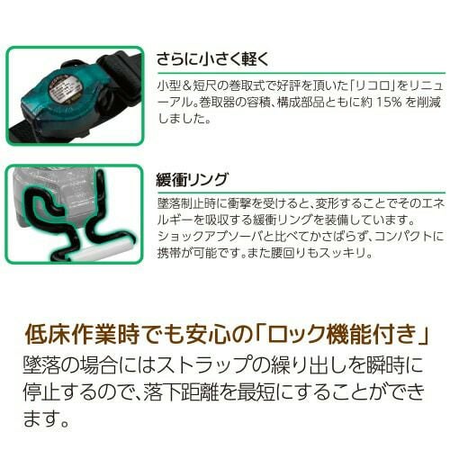 他の画像を見る 安全帯 胴ベルト型 墜落制止用器具 タイタン TITAN サンコー 新規格 RICORO-N リコロ-N ライト RA507N Mサイズ 胴ベルト型墜落制止用器具 胴ベルト型安全帯 1丁掛け ロック装置付き 巻取式 リール式 ランヤード 巻き取り 軽量 高所作業 落下防止 電気工事 特別価格 ¥ 14,110 税込 小型&短尺の巻取式 詳細を見る お気に入りに登録する