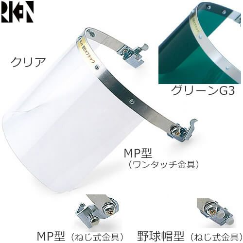 6. ヘルメット取付型保護シールド 理研オプテック 305mm幅アクリルシールド グリーンG3 NS-201大 ヘルメット取付型遮光シールド※ NV-201大 NB-201大 RIKEN