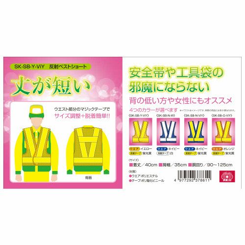 他の画像を見る 安全ベスト 高視認 藤原産業 SK11 反射ベストショート SK-SB-Y-ViY、SK-SB-N-W、SK-SB-N-ViY、SK-SB-O-ViY 反射材 男女兼用 メンズ レディース 高視認性安全服 バイク ジョギング 夜間 自転車 スポーツ 交通整理 事故防止 夜間作業 特別価格 ¥ 1,080 税込 丈が短く安全帯や腰袋の邪魔にならないショートタイプの反射ベストです。工事現場、建築現場、交通警備、パトロール、防災訓練時に着用。危険表記。 詳細を見る お気に入りに登録する