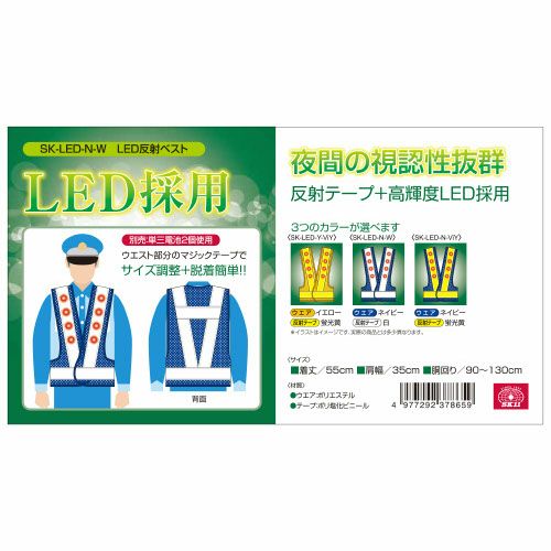 他の画像を見る 安全ベスト LED 藤原産業 SK11 LED反射ベスト SK-LED-N-W、SK-LED-Y-ViY 発光 男女兼用 メンズ レディース 高視認性安全服 バイク ジョギング 夜間 自転車 スポーツ 交通整理 事故防止 夜間作業 特別価格 ¥ 2,480 税込 高輝度反射テープでよく光り、よく目立ちます。工事現場、建築現場、交通警備、パトロール、防災訓練時に着用。危険表記。 詳細を見る お気に入りに登録する