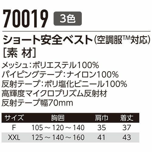 他の画像を見る 安全ベスト 高視認 Asahicho 旭蝶繊維 空調服対応 ショート丈安全ベスト 70019 安全服 反射材付 作業着 空調服の上から着用可能 特別価格 ¥ 1,793 税込 〜 特別価格 ¥ 税込 空調服TMの上から着用可能ショート安全ベスト ショート丈のため空調服TM着用時もファンに干渉しません。再帰性反射テープ・夜間の視認性を高める再帰性反射材を使用ダイヤの型押しで水の浸入をストップ!頼もしい反射力の70mmの幅広テープにダイヤの型押しを施して水の浸入を防ぎ、はがれにくさをアップ簡単装着マジックテープ・大きなマジックテープで脱着簡単 詳細を見る お気に入りに登録する