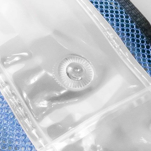 背中に社名や氏名をプリントした用紙を入れるのに便利な透明ポケット付(用紙サイズ:縦/約7cm横/約25cm)