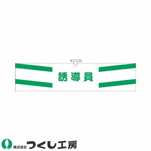 腕章 つくし工房 ヘリア腕章 誘導員 白地+緑ライン 756 腕章
