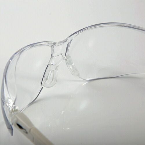 スタイリッシュで軽快に装着できるワンピースめがね 新形状!鼻骨にのる鼻パッド:新たに開発した“鼻骨にのる鼻パッド”は、鼻根の部分でめがねを支えるため、鼻の形を選ばず、しっかり安定した装着感を得られます。さらに、マスク着用時でも鼻パッドがマスクに干渉しにくいため、めがねの浮き上がりを抑え、マスクと相性のよい保護めがねとしてご使用いただけます。重心に配慮したテンプル:安定性や軽快感を実感できる、新形状のテンプル(つる)を採用。頭を抱え込むしなやかな形状と、重心バランスに配慮した先端形状により、保護めがねがしっかりフィットし、装着時の疲労感を軽減します。角度調節機能:テンプル(つる)部分には、3段階の角度調節機能を搭載。 めがねの支点である鼻と耳の位置は人それぞれ異なります。角度を調節することにより繊細な調節が可能となり、装着時のフィット感が向上します。