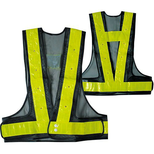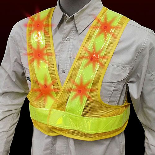 12個の赤色発光のLEDで視認性UP ・安全帯や工具袋が邪魔にならない着丈40cmのショート丈タイプ!・強力反射テープのため、LEDを使用しない場合でも安全確保できます!・名前・会社名・血液型を記入できるタグ付・夜間・暗い場所での作業に最適・腰回りは、調節可能な両サイドマジックテープ採用・メッシュ素材使用で重さも軽く、疲れを軽減・乾電池は別売りです