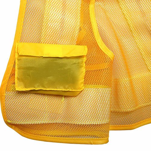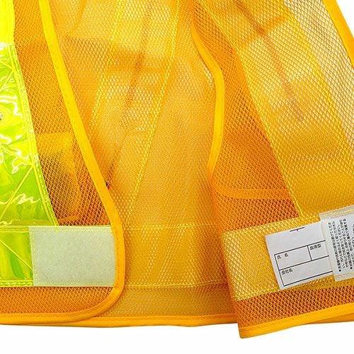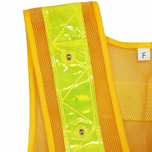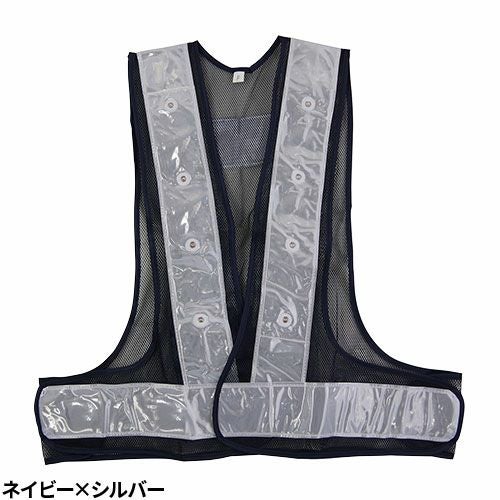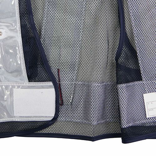 安全帯や工具袋が邪魔にならない着丈40cmのショート丈タイプ! 5cm幅の強力反射テープが夜間作業で効果抜群!名前・会社名・血液型を記入できるタグ付腰回りは、調節可能な両サイドマジックテープ採用メッシュ素材使用で重さも軽く、疲れを軽減