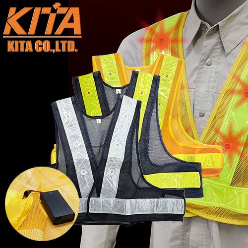安全ベスト 高視認 喜多 LED安全ベスト No6070 安全服 反射材付 作業着 作業服