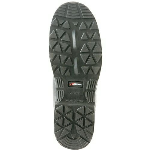 先芯強度JIS Sクラスの約3倍。スリップサインあり。 先芯はJIS(H級 重作業)の100Jよりもさらに衝撃に強いISO(国際規格 安全靴)200Jの先芯を採用