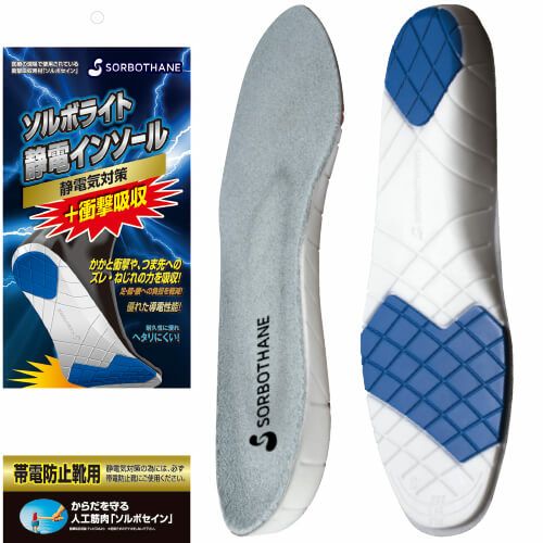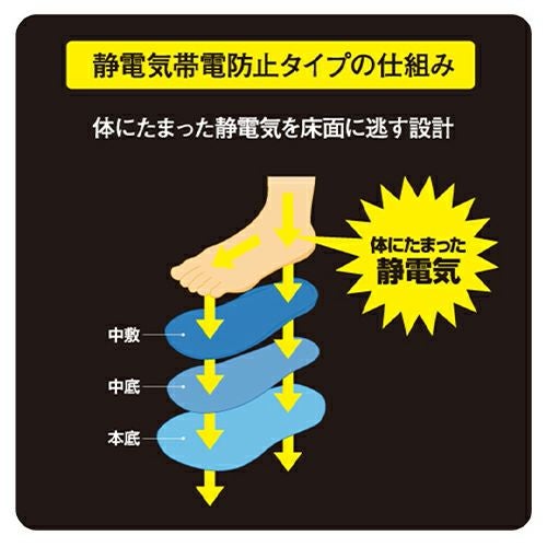 帯電防止靴用足の疲れからくるトラブルを軽減し、人体への帯電を防止する 静電気対策+衝撃吸収かかとへの衝撃や、つま先へのズレ・ねじれの力を吸収!・足・膝・腰への負担を軽減!優れた導電性能!耐久性に優れヘタりにくい!※静電気対策の為には、必ず帯電防止靴にご使用ください