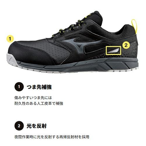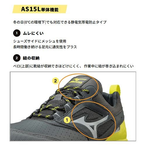 安全靴 ミズノ MIZUNO オールマイティ ALMIGHTY AS15L 静電気防止 紐靴 JSAA スニーカー 静電気帯電防止 帯電 制電 軽量 耐滑 かっこいい おしゃれ メンズ レディース ユニセックス 軽量 疲れにくい 樹脂先芯 クッション性 3E ブラック 黒 通気性 軽い 屈曲性 22.5~29.0cm