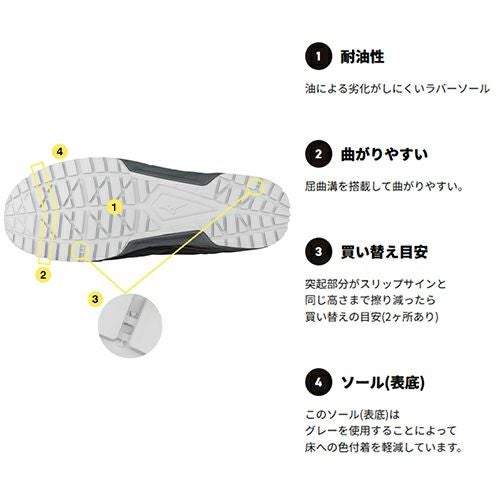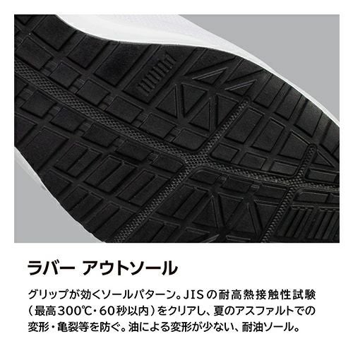 高対滑性能ソール「Grip Max」搭載対油、対滑、静電機能付き樹脂先芯で軽量仕様 厚生労働省産業安全研究所技術指針に定められた、対滑性能最高区分5をクリア作業時の安全性を高めたノンスリップソール「Grip Max」搭載モデル・インナーにはクッション性が高く、柔らかいカップインソールを採用・JSAA形式認定 B種合格品・撥水メッシュ使用・女性サイズ対応・反射材仕様・3Eワイド先芯でつま先ゆったり