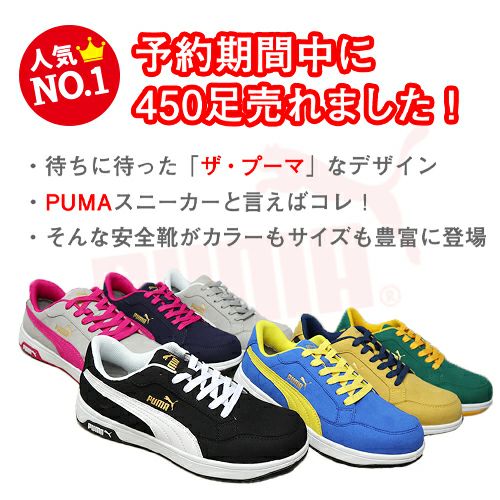 Always Loved!自分色で楽しもう! PUMA史上最もカラー展開が豊富でサイズもレディースサイズから対応したニューモデル!待ちに待った「ザ・プーマ」なデザイン。PUMAスニーカーで最も人気のデザインを安全靴にも採用しました。