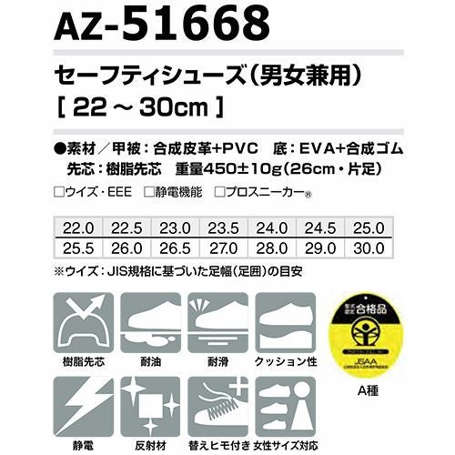 安全靴 AITOZ アイトス TULTEX タルテックス セーフティシューズ 男女兼用 メンズ レディース 作業靴 スニーカー ローカット AZ-51668 紐靴 JSAA規格 プロテクティブスニーカー おしゃれ かっこいい 先芯あり 樹脂先芯 耐油 クッション性 制電