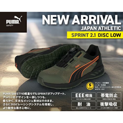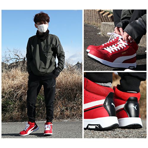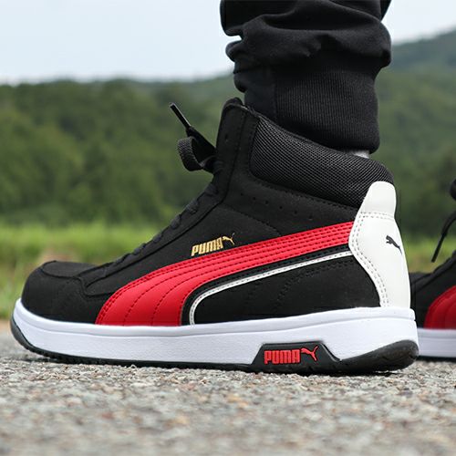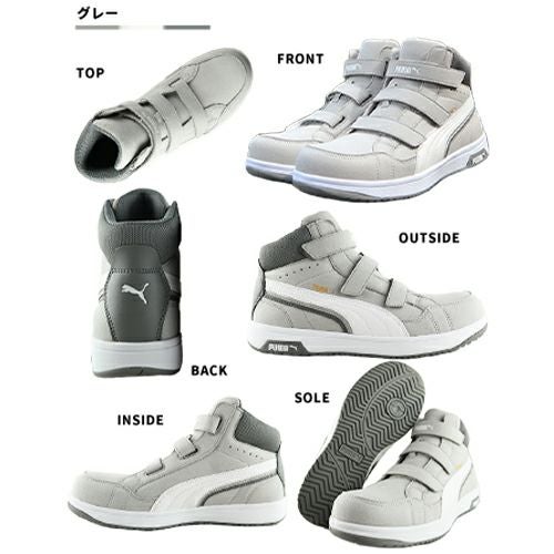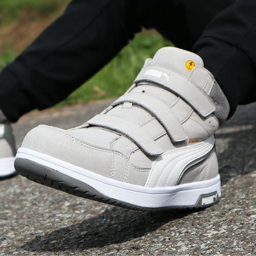 大人気のヘリテイジシリーズからミッドカットが登場! 待ちに待った「ザ・プーマ」なデザインのハイカット安全靴!静電気帯電防止で静電気を靴底から逃します。