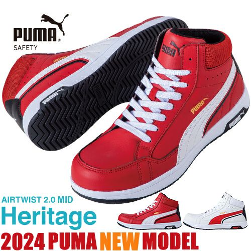 【数量限定!9,900円】安全靴 ハイカット PUMA プーマ 安全靴 新作 静電 ヘリテイジ エアツイスト 2.0 MID Heritage AIRTWIST 2.0 MID 2024 新商品 メンズ 紐靴 ミッドカット ミドルカット スニーカー 作業靴 JSAA規格 軽量 人工皮革 かっこいい おしゃれ 建築 建設 運送 工場 25.0~28.0cm