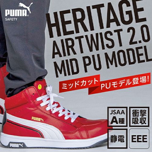 安全靴 ハイカット PUMA プーマ 安全靴 新作 静電 ヘリテイジ エアツイスト 2.0 MID Heritage AIRTWIST 2.0 MID 2023年 新商品 メンズ レディース ミッドカット ミドルカット 作業靴 紐靴 スニーカー JSAA規格 軽量 先芯入り かっこいい おしゃれ 人気 25.0~28.0cm