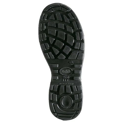 → 革製の普通作業用JIS規格品で、かかと部の衝撃エネルギー吸収性基準をクリアしている