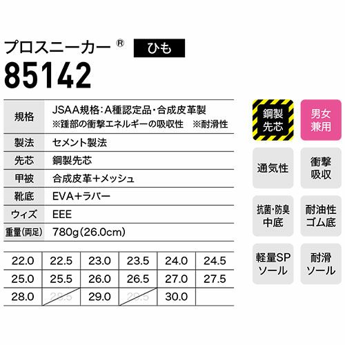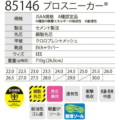 他の画像を見る 安全靴 ジーベック XEBEC プロスニーカー(ひも) 85410 紐靴 JSAA規格 プロテクティブスニーカー安全靴 JSAA規格 特別価格 ¥ 4,250 税込 全15サイズの男女兼用モデル!人気の定番スニーカーのシンプルなデザインを採用!! 幅広い職場で使用できるシンプルなデザインながらクッション性にも優れ、JSAA A種認定の高機能なヒモタイプのセフティシューズ。耐久性が高く、熱に強いラバー底はハードな現場にも対応します。靴底カラーはホワイトで統一。床面などの汚れを気にする職種や屋内作業、内装作業にもおススメです。穴あきEVAにメッシュ素材を貼り合わせたインソールでムレを防ぎ快適な履き心地。 詳細を見る お気に入りに登録する