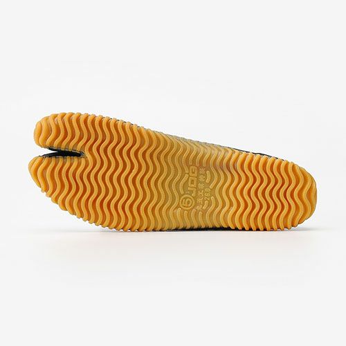 かかとに衝撃吸収スポンジが入った祭りたび。クッション性があり、滑りを軽減する波型の底意匠を採用。巻き上がったソールデザインは耐久性を高めています。