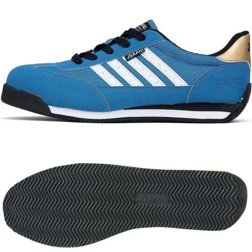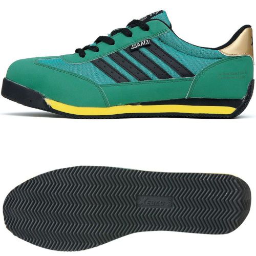 JSAA型式認定シューズ。スタイリッシュな先細デザインと鮮やかなカラーでラインナップ。スチール先芯仕様でも680g(両足)のめちゃ軽スタイリッシュなシューズです。