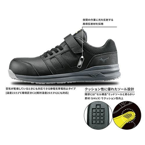 他の画像を見る 安全靴 ミズノ MIZUNO オールマイティAS2 34L 静電気防止 紐靴 JSAA規格 プロテクティブスニーカー 静電気帯電防止 JSAA規格 軽量 マジックテープ 樹脂先芯 ムレにくい 疲れにくい おしゃれ 人気 かっこいい 室内 倉庫業 運送業 運輸業 22.0~30.0cm 特別価格 ¥ 14,080 税込 逃がせ、静電気。 温度23±2℃ 環境区分C2(相対湿度25±3%)にも 対応。静電気が原因となって発生するトラブルを減らす静電気帯電防止タイプ。クッション性に優れ、ゴムの靴紐だから脱ぎ履きカンタン。冬の日でも対応できる静電気帯電防止タイプ 詳細を見る お気に入りに登録する