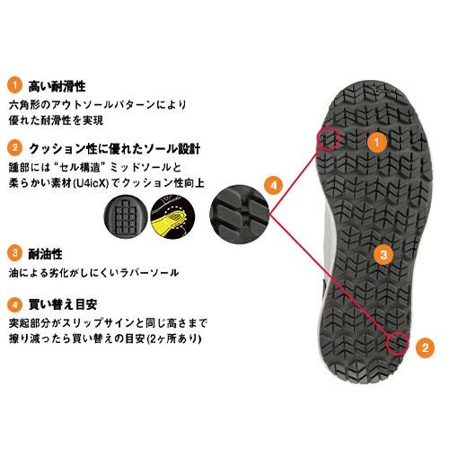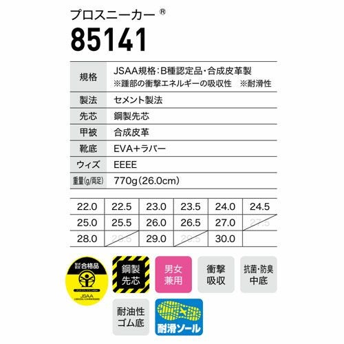 他の画像を見る 安全靴 ジーベック XEBEC セフティシューズ 85141 紐靴 JSAA規格 プロテクティブスニーカー 鋼製先芯 つま先保護 耐滑 衝撃吸収 スポーティ かっこいい 黒 ブラック 赤 レッド 白 ホワイト 幅広 屋外作業 アウトドア 釣り バイク 特別価格 ¥ 4,290 税込 抜群の履き心地 滑りにくい靴底 耐滑性に優れたゴム配合とソール意匠で作業中の転倒事故を防止する耐滑ソールを搭載。 詳細を見る お気に入りに登録する