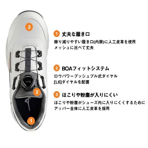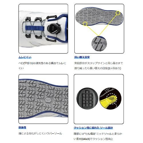 他の画像を見る 安全靴 ミズノ 新作 MIZUNO オールマイティ 防塵 SU51L BOA 限定 限定カラー 新商品 BOA メンズ レディース ダイヤル式 JSAA規格 プロテクティブスニーカー スニーカー 軽量 軽いおしゃれ かっこいい 人気 疲れにくい スニーカー 24.5~29.0cm 特別価格 ¥ 17,380 税込 〜 特別価格 ¥ 税込 心強い人工皮革を全面に採用し、高い防塵性能を つま先を上げた設計により、作業現場での「つまずき」に配慮。アッパー全面に人工皮革を採用することで、防塵にもすぐれたタフな設計。作業現場での転倒に影響のある「つまずき」や「すべり」に 対して、トウアップ設計のUソールと六角形のアウトソールパターンを採用することで配慮 詳細を見る お気に入りに登録する