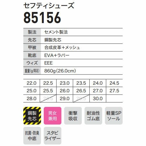 他の画像を見る 安全靴 ジーベック XEBEC セフティシューズ 85156 先芯あり スニーカータイプ メンズ レディース 男女兼用 紐靴 セーフティシューズ 定番 特別価格 ¥ 4,675 税込 通気性のあるメッシュ素材を使った「ミッドカット」モデル。ワイド設計のアウトソールにスタビライザーを搭載して安定感アップ。 メッシュ生地使用のミッドカットシューズ■ワイド設計のアウトソールで抜群の安定感。■かかと部のスタビライザーは歩行を安定させて疲れを軽減。安定感アップ■クッション性に優れたミッドソール■アッパーには通気性のあるメッシュ素材を使用。 詳細を見る お気に入りに登録する